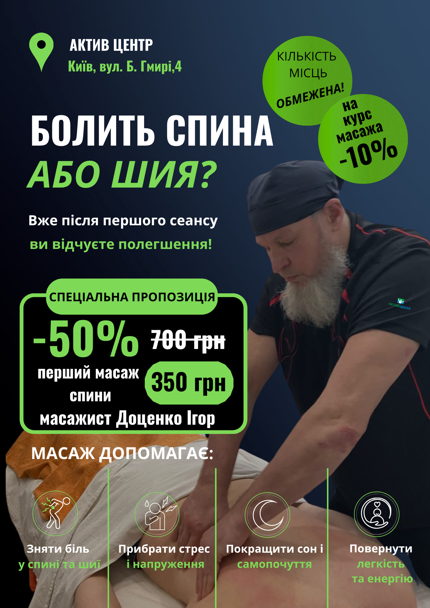 Этот блог не предназначен для предоставления диагноза, лечения или медицинских советов. Содержимое блога на ресурсе active-center.com.ua предназначено только для информационных целей. Пожалуйста, проконсультируйтесь с врачом или другим медицинским работником относительно любого медицинского или связанного со здоровьем диагноза или вариантов лечения. Самолечение может быть опасным для Вашего здоровья.