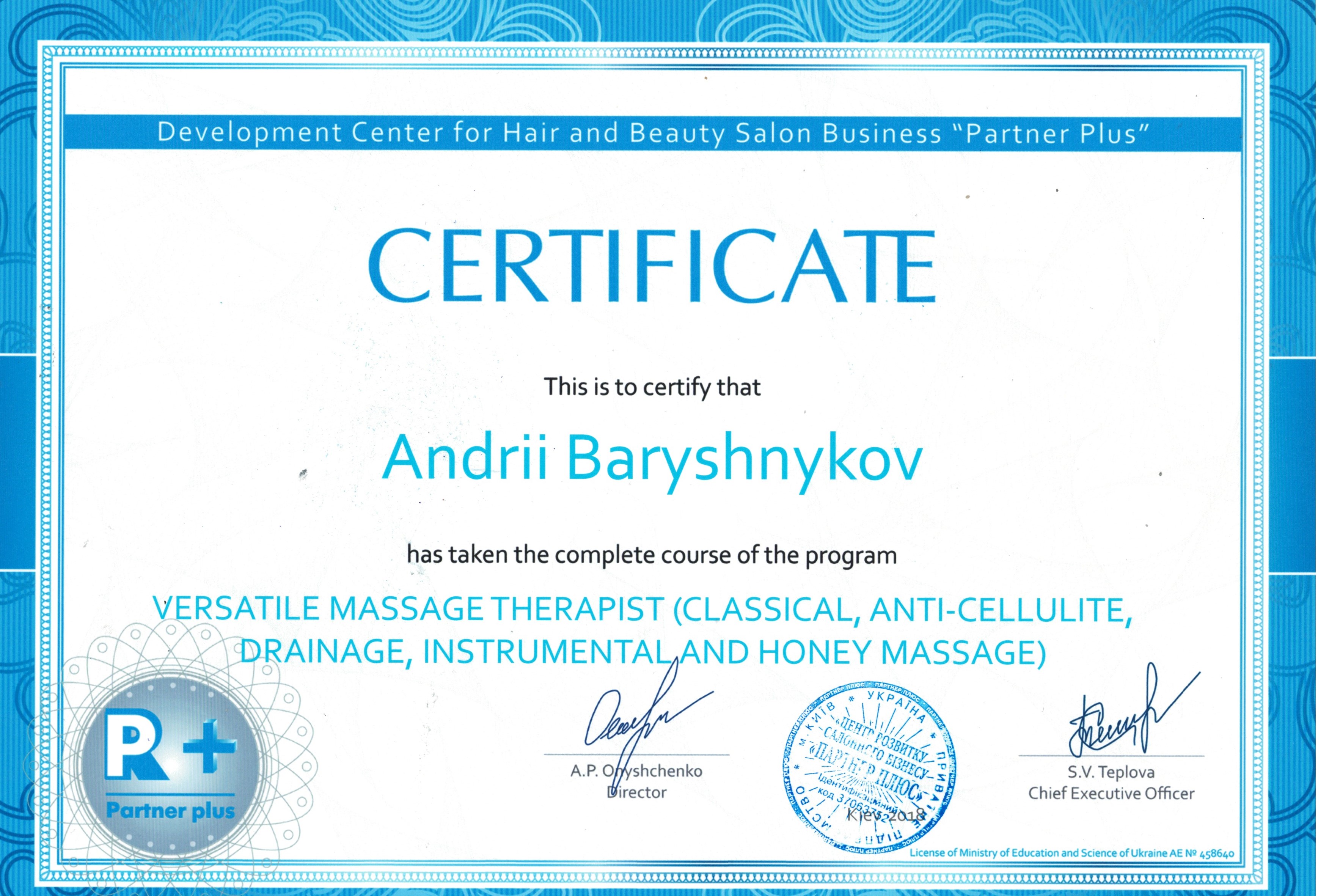 Хочу висловити щиру подяку реабілітологу Баришникову Андрію за професіоналізм, уважне ставлення та індивідуальний підхід. З перших занять стало зрозуміло, що Андрій дійсно глибоко розуміється на своїй справі, вміє пояснити, підтримати та мотивувати.