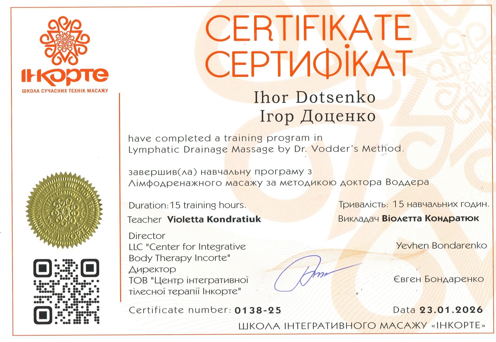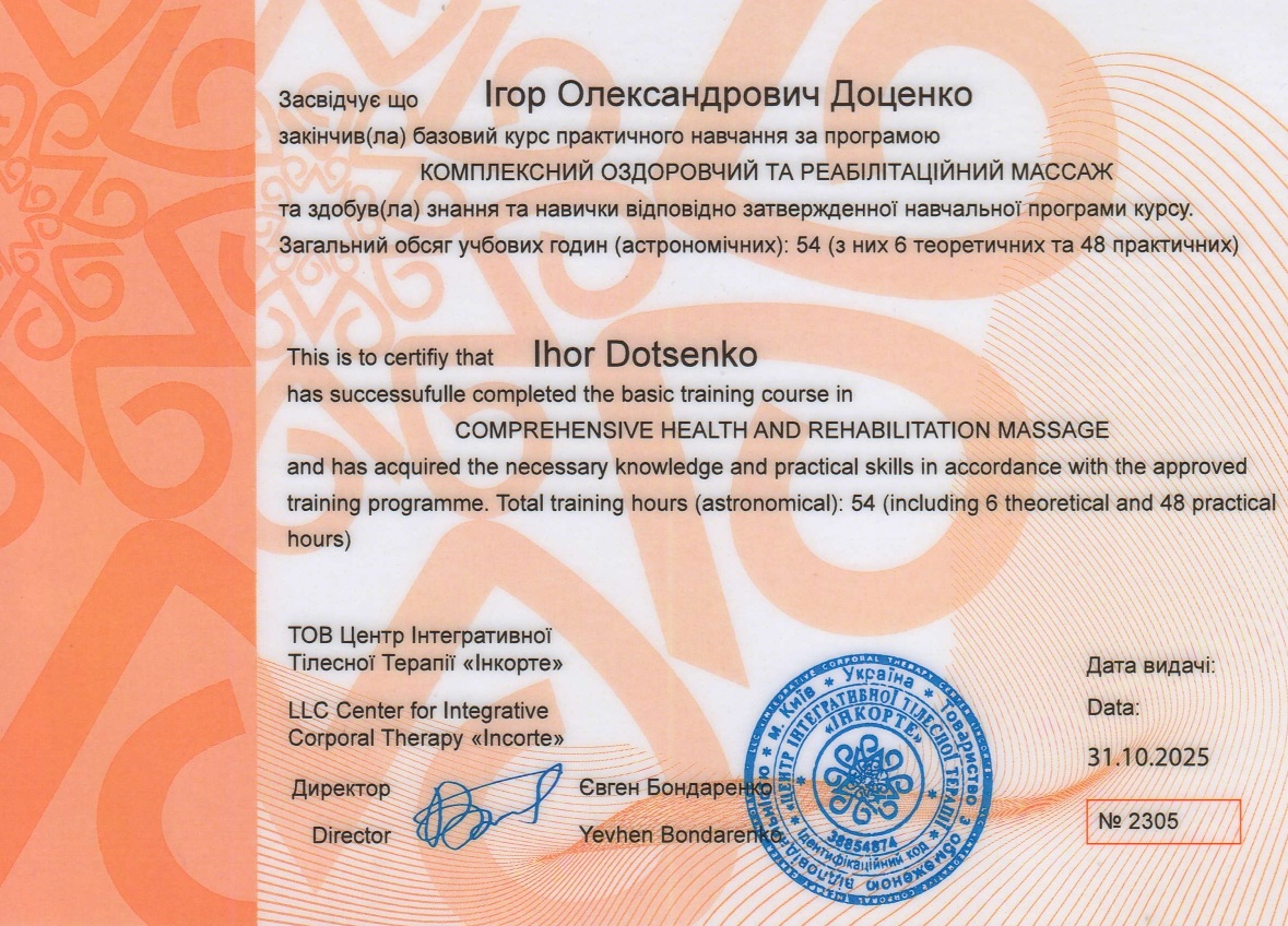 В своей работе делает акцент не просто на релаксации, а в результате — облегчение боли, восстановление и улучшение качества движения.